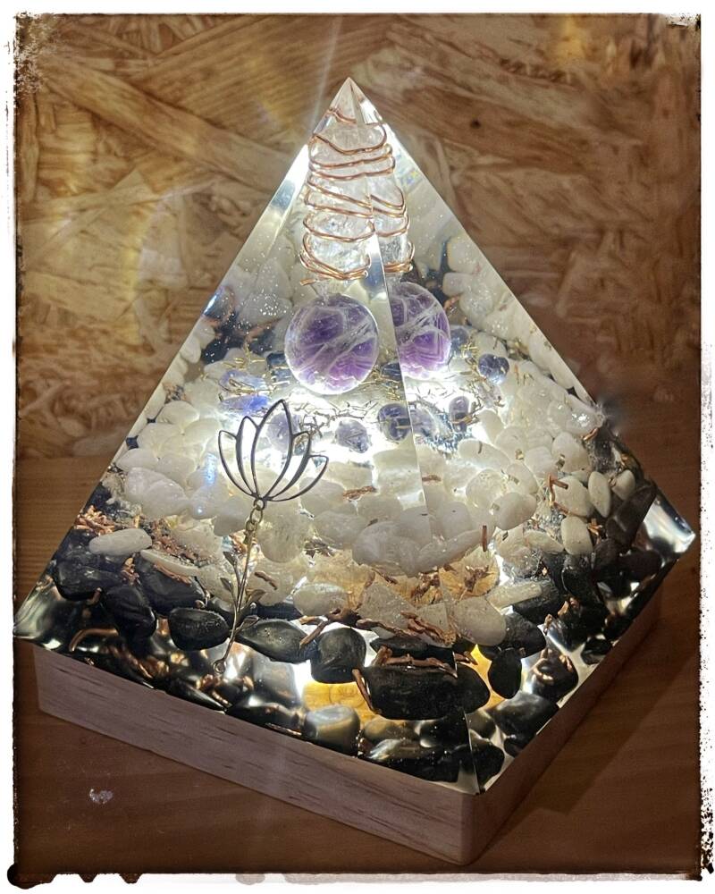 Vous pouvez commander votre orgonite directement dans la boutique, composer vous même votre pyramide orgonite ou me contacter afin que nous établissions ensemble un projet qui vous corresponde : vous pourrez ainsi choisir les pierres qui composeront votre orgonite, ainsi que les symboles et les éventuelles inclusions qui en feront un objet absolument unique.