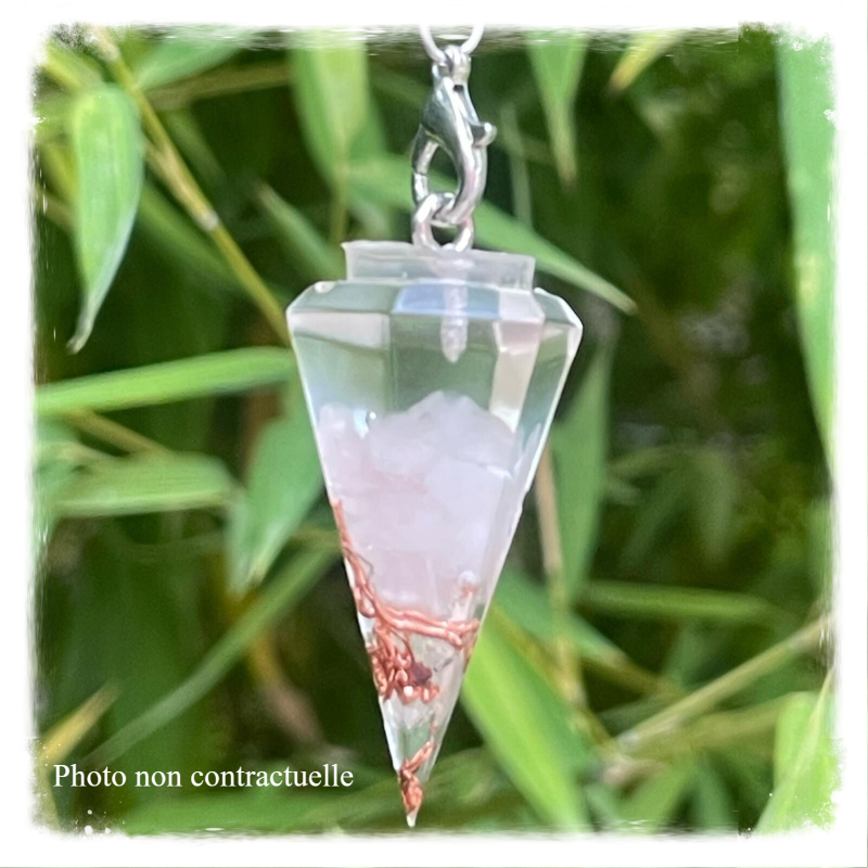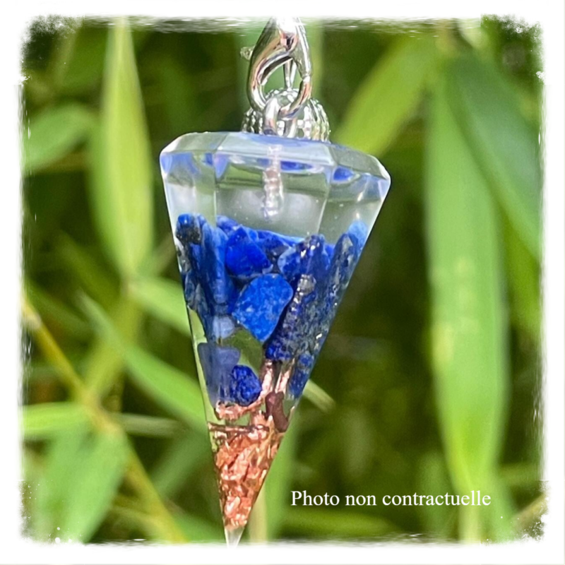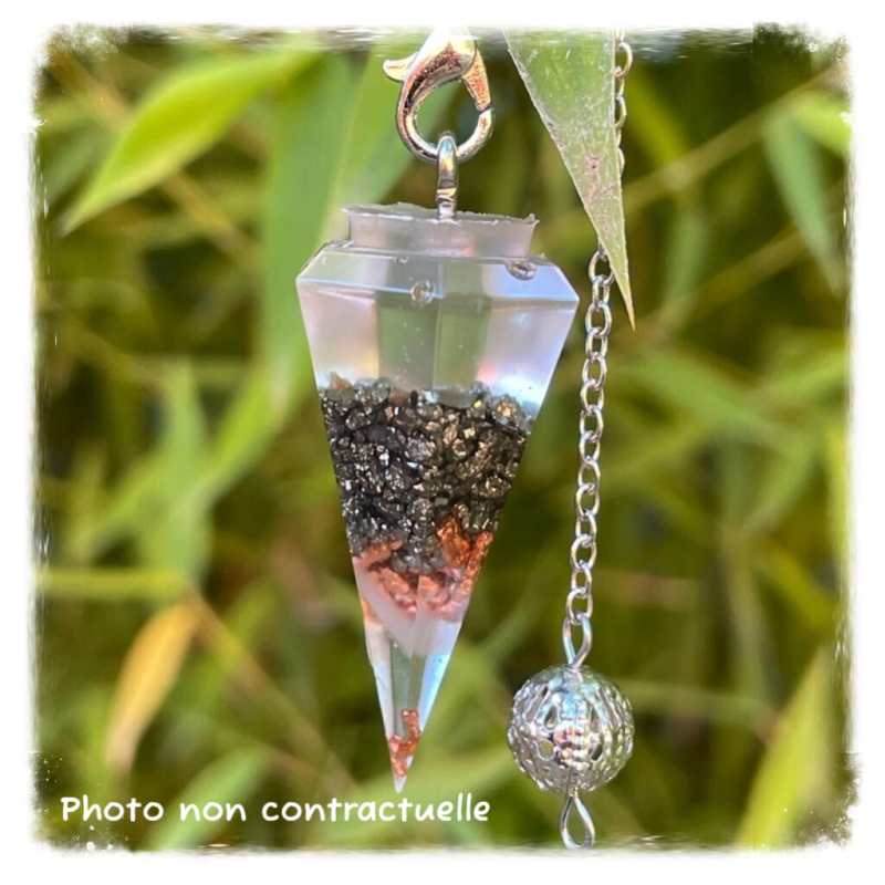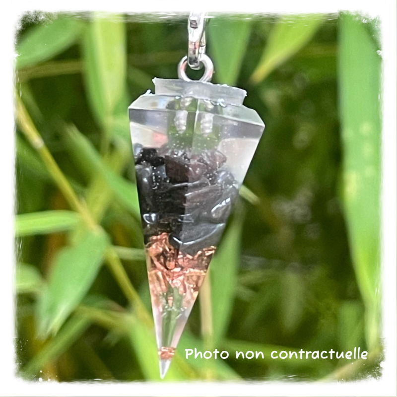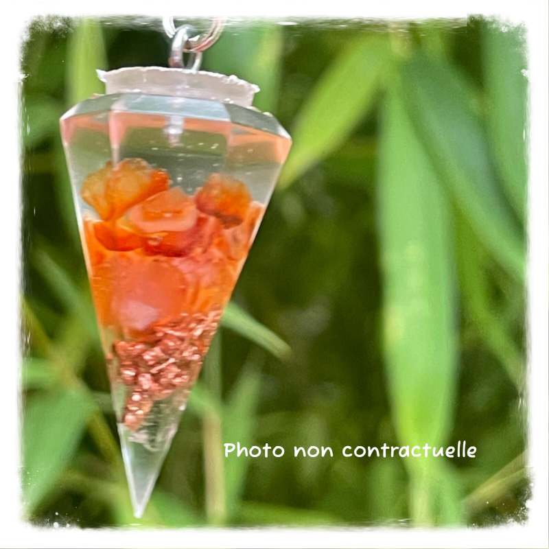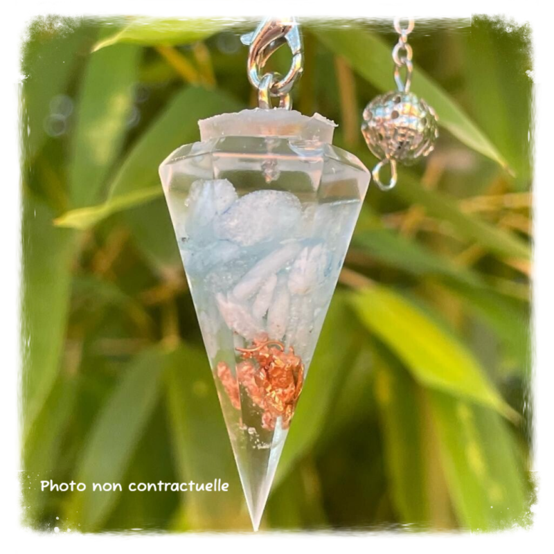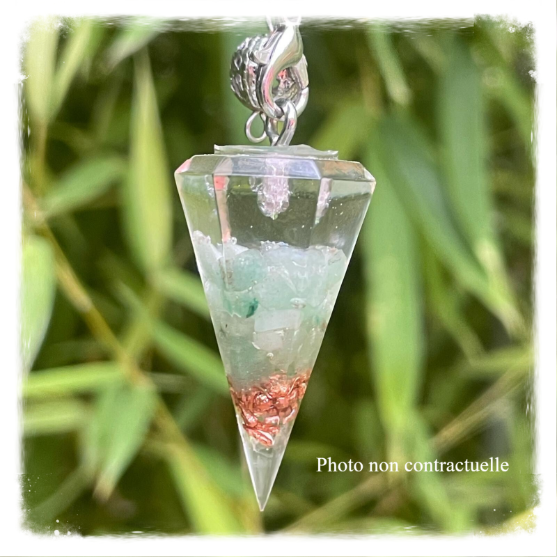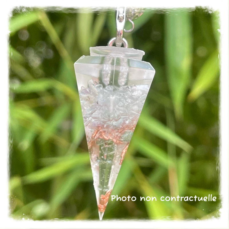 Autre façon de porter l'orgonite sur soi: le pendule orgonite qui favorisera votre bien-être tout en vous accompagnant dans vos activités de radiesthésie.